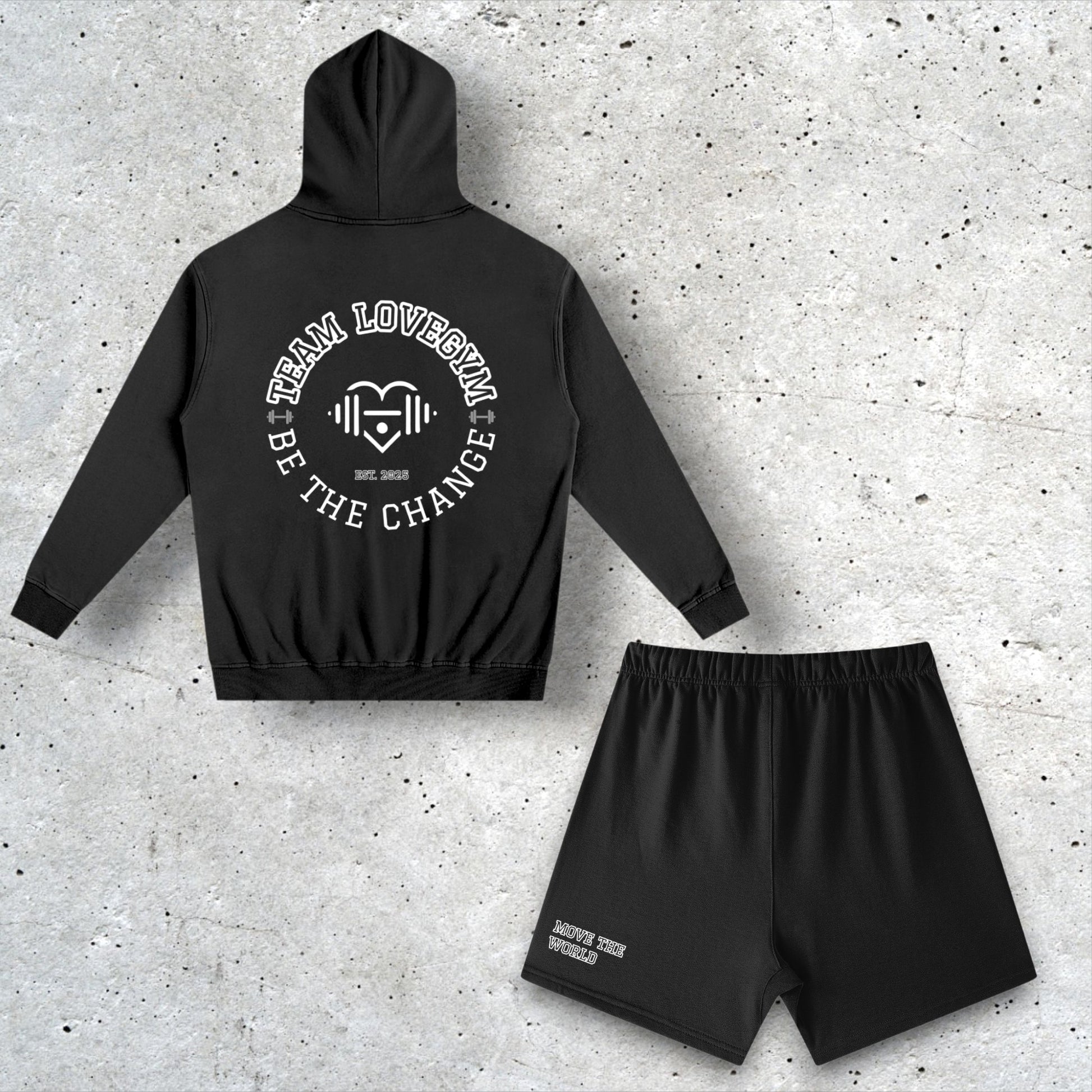 TEAM LOVEGYM Oversized Hoodie & Black Shorts Set